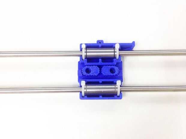 Paso 18: Monte el soporte de la correa de eje en las varillas lisas.