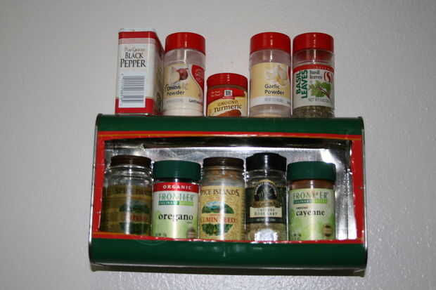Bueno, me encanta el aceite de oliva. Mucho. Compró una lata de tres litros y había consumido en un par de semanas. Woo. Tiempo de reutilización. Sorprendentemente, eliminación de 10 tarros de especias de mi gabinete liberada una gran cantidad de espacio. Y ahora mis especias utilizadas son fácilmente a mano. ¿Lo que no es para amar?