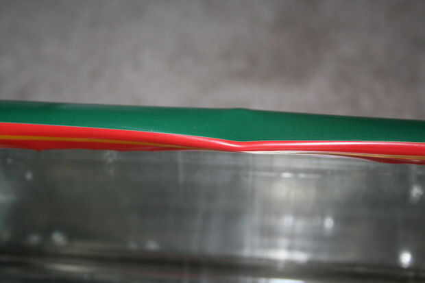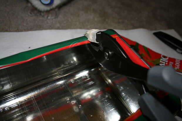 Después de que sus bordes se enrollan hacia adentro, use las pinzas para aplanar el borde. En la foto se puede ver que mina envuelta con cinta adhesiva para reducir los desgastes en la superficie.