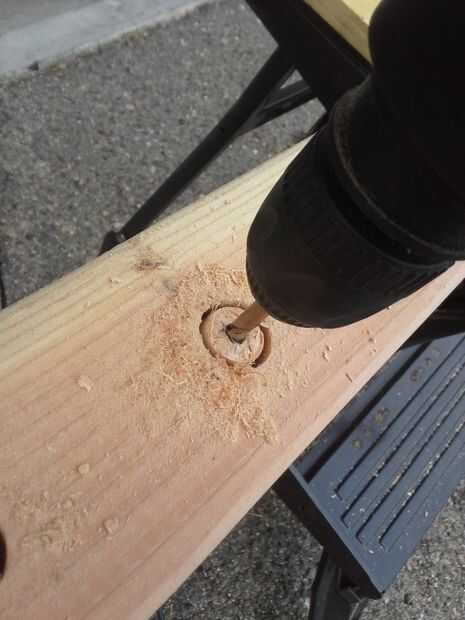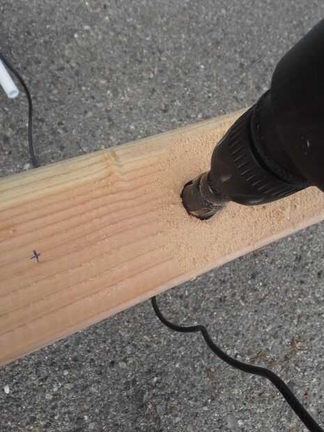 2. tal vez usted tiene un pozo más profundo vio, pero mía no era capaz de ir todo el camino a través de la 2 x 4. Esto es donde usé el segundo pedacito de taladro. Después de hacer todo el agujero inicial cortes, puse la punta regular (1/4"?) y seguido los agujeros hechos en el paso 1 hasta que la punta salió al otro lado.