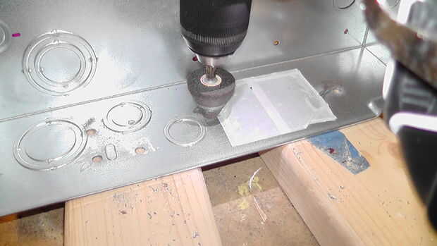 También perforé un conjunto de agujeros en el lado del gabinete del interruptor por lo que podía sujetarse al columna en la pared.
