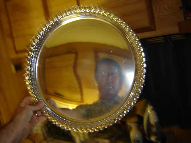* Una bandeja de plástico que sirve de 16 pulgadas (otra vez, de Smart y Final). Compramos brillantes y brillantes. Tienen tanto cromo (mirando) oro y unos unos así.