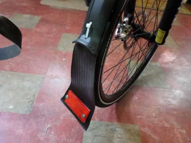 He seguido instrucciones de sobre todo de Alex Wetmore en la fabricación de un mudflap: http://phred.org/~alex/bikes/fendermudflap.html