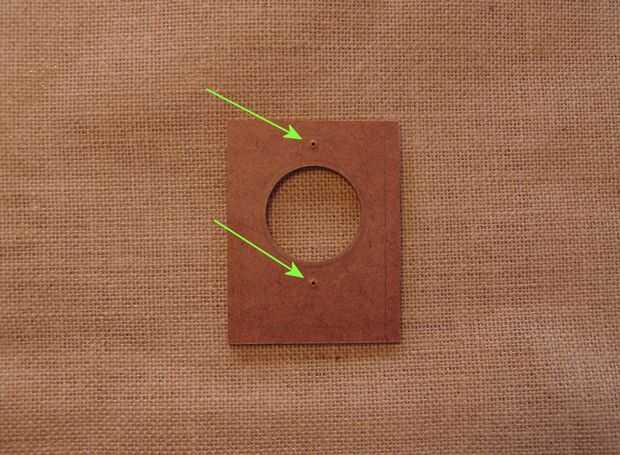 Haga dos orificios en el deflector como se muestra en la imagen, una talla más pequeña que el grosor de los tornillos de ojal. He encontrado 10 mm (3/8 de pulgada) de la abertura obras para altavoces de 50 mm (2 pulgadas) de altavoz, y 15 mm (5/8 pulgada) trabaja para los altavoces de 40 mm (1 5/8 pulgadas).