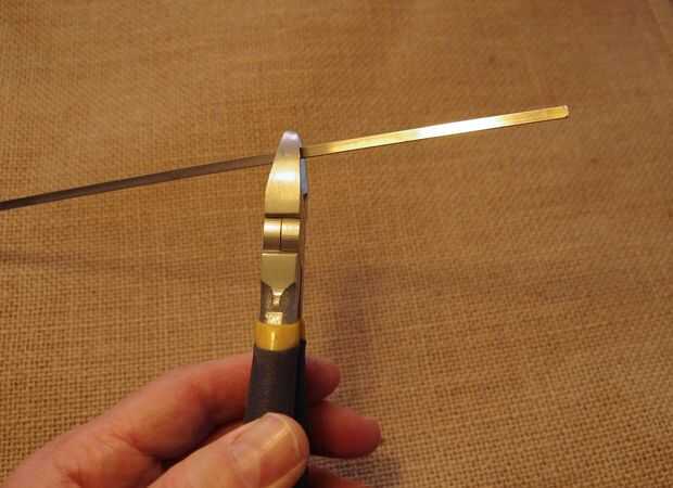 Corte un pedazo de la tira de acero inoxidable, un poco más largo (digamos de 2 cm - 13/16 pulgada) que la distancia entre los tornillos de ojal. Un cortador de lado funciona bastante bien.