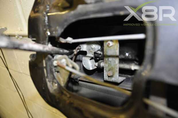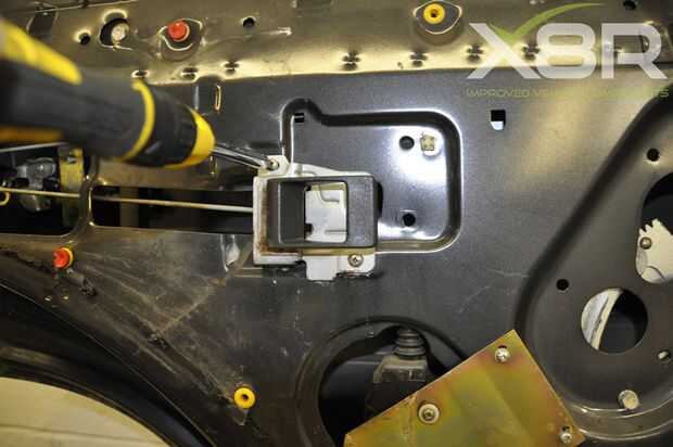 Desatornille el varillaje de palanca y giro de cierre fuera de posición.