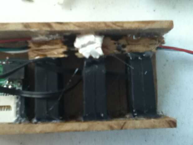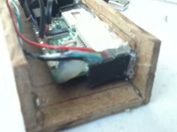 Con pegamento caliente a juntar todas las piezas de la caja y recuerda hacer un agujero para el cable que va conectado a la laptop, si necesita poner cables, utilizar el soldador, luego puede soldarlos de nuevo