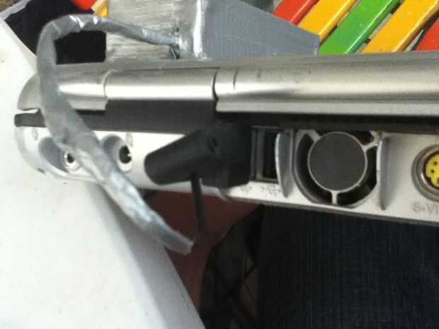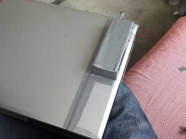 Con cinta del conducto puede conectar a su ordenador portátil, lo pongo en la parte posterior del monitor, pero también puede usar un lado de la computadora portátil, pero tenga cuidado de no bloquear las rejillas de refrigeración o el equipo se recalentará.