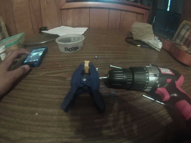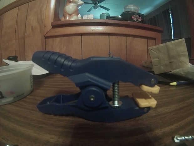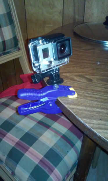 Taladre un orificio de aproximadamente el tamaño del perno en la abrazadera (eligió el área curvada y hacia el lado para evitar el refuerzo). Después, ajuste el tornillo en el interior de la abrazadera y asegurar las tuercas. Después debe ser capaz de fijar la cámara en lo que usted necesita, hice este proyecto para los propósitos de la música pero las posibilidades son infinitas!