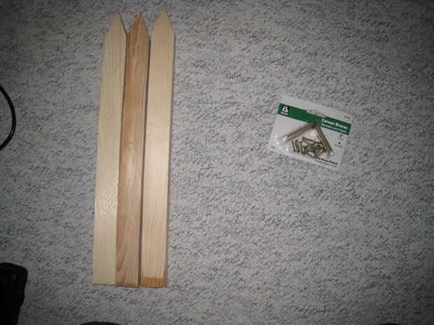 Usé 2" escuadras de home depot; ellos me costaron $2,89. Para la madera, compré dos estacas de jardín madera; eran 20 centavos pieza en The home depot. Los tornillos de madera que utiliza para los altavoces de montaje fueron $1,49. Estoy haciendo esto para $4,58. Fui a home depot. Estoy seguro que usted puede hacer mejor en algún otro.