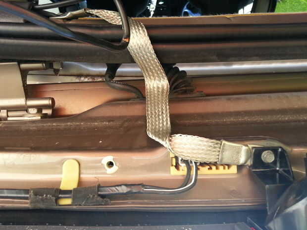 Ubique un tornillo en la tapa y un tornillo en el cuerpo que puntos de la tierra buena para la correa. Como he dicho antes, la trenza de acero es la mejor tierra de RF, pero al menos tienen algo hacer una tierra dedicada de la escotilla al cuerpo o de lo contrario pierdes mucho de la intensidad de la señal.