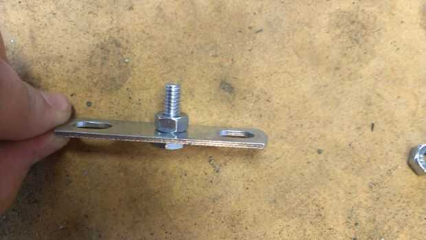 Tomar su perno puesto a través del agujero y atornille la 1 tuerca en el otro lado. No tienes que usar dos tuercas. A ver qué hacer con la otra en un minuto.