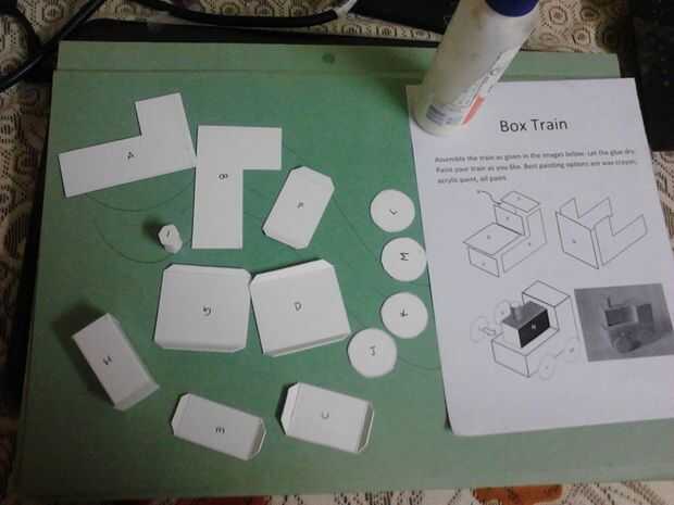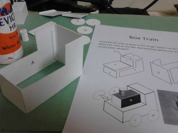 Montaje de arte de papel DIY juguete tren (1 / 3 paso)