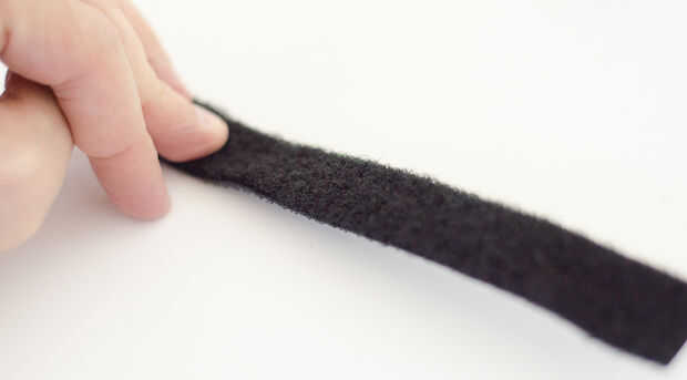 Ahora tenemos dos tiras de largo verticales. Corte dos 30 cm (o más) las tiras de ganchos y coloque la punta de estas tiras a los lados de la pieza base. Hacer no Retire los protectores de espalda pegajosos. Sugiero dejar cierto margen a los lados de la pieza de montaje para mejor agarre. Si lo hace bien, conseguirá algo que parece un símbolo de PI (Π).