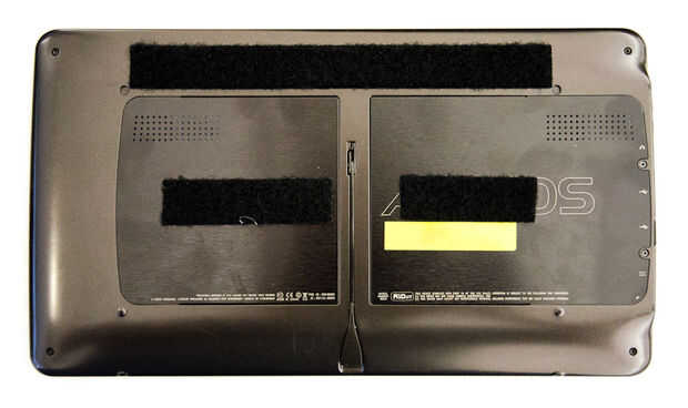 Ahora necesita colocar una tira de bucles en su tablet así que usted puede adjuntar al Monte. Tengo una tableta vieja mierda simplemente pegué la tira directamente a la tableta. Sin embargo, si no quieres pegar permanentemente cosas para tu tablet elegante, usted puede pegar lo barato tapa trasera.