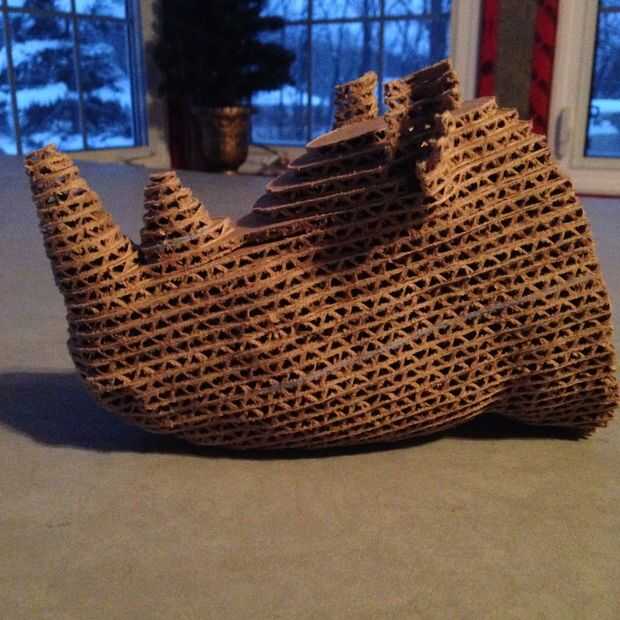 Buscando para hacer algo nuevo con mi maquina CNC, me encontré con Make 123D. Con la ayuda de sus vídeos y archivos 3D gratis pude aprender a utilizar el software y construir una cartulina cabeza de rinoceronte.
