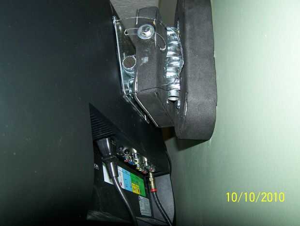 La placa de posición de inclinación está hecha de un policarbonato de chatarra. También sirve como separador entre la TV y la placa de montaje VESA. polycarb hacer bolsillos de asientos para las 6 tuercas en la parte posterior de la placa VESA se perforaron agujeros de 1/2 pulgada.