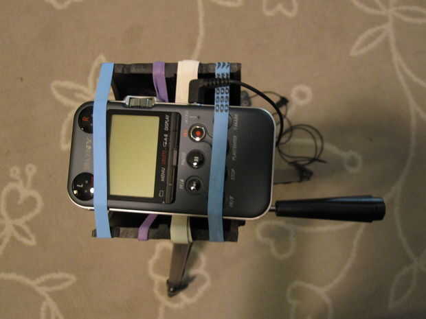 Puede que desee colocar las gomas con más cuidado que tengo en esta foto. Pero puesto que el PCM-M10 tiene un mando a distancia alámbrico, no necesitaba realmente el acceso a los botones que figuran aquí arriba.
