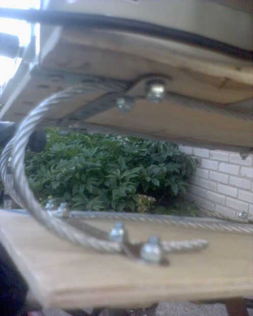 Ahora Atornille los pernos y piezas de metal juntas, para celebrar juntos. Todos los 16 pernos tienen que entrar. Sujete una pieza de metal rised y deslice el cable debajo de él, de modo que se extiende en el interior unos cm. Ahora atornillar los dos tornillos, por lo que el cable está apretado. Esta es la única razón, que el estante superior derecha en la parte superior de la bandeja inferior. Es por ello que tornillos no hacen, se necesitan tornillos aquí. Asegúrese de que el cable es de 90 grados a la parte metálica.