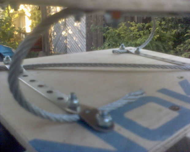 Ahora usted tiene todo el cable necesario donde debe estar, con sólo 2 tornillos firmemente en un extremo. Ajuste la longitud de la cuerda empujando y tirando donde sea necesario, para hacer ambos estantes alineados en la parte superior. Apriete los tornillos en el mismo orden como el hilo va de los dos primeros tornillos apretados. Cuando los 16 pernos apretados, deben tener su construcción como será. No importa las piezas de metal doblado. Lo único que importa es que el cable está firmemente atornillado a los estantes.