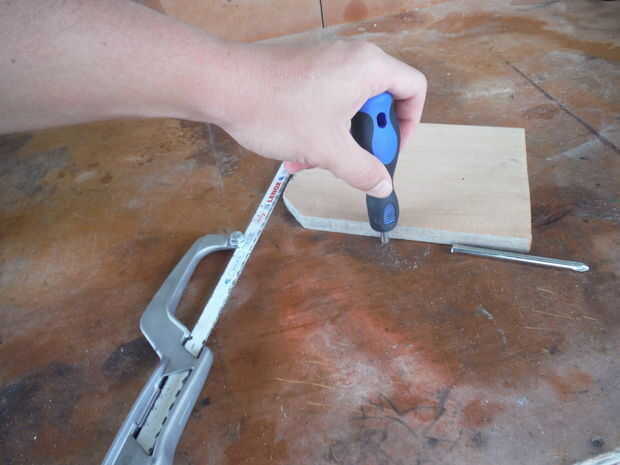 Esto es donde un poco de grasa de codo entra en juego, atravesar ese destornillador para que quede al ras con el tablero de madera, asegúrese de que hay ningunos filos sobresale el corte