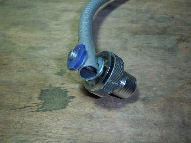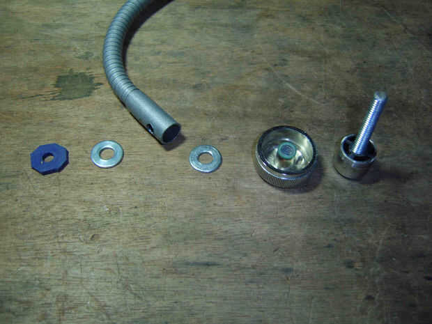 Taladrar el centro de las perillas a poco menos de 1/4 pulg conduzca el tornillo a través de la perilla grande para hacer hilos utilizables. Conduzca el tornillo en la perilla más pequeño, luego cortó la cabeza del tornillo y limpiar las roscas con un archivo.