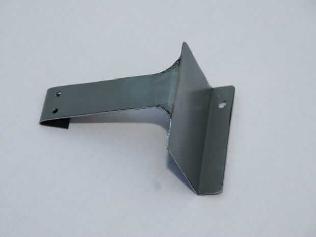 Utilizando un banco de trabajo, doblar un ángulo de 90 grados en la base de la tira (¡ exactamente!) Doblar un ángulo de 90 grados justo por encima de los orificios de 4 mm. Doblar una vez más, representan el espesor de la tubería de PVC. Ahora la tira se puede cortar a la longitud exacta.