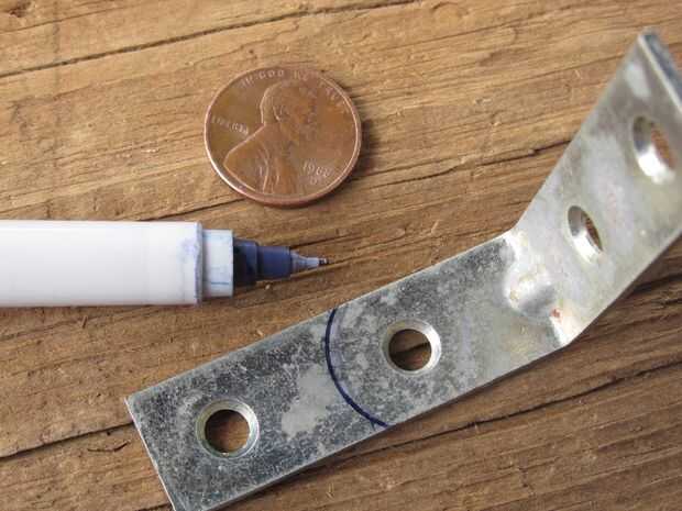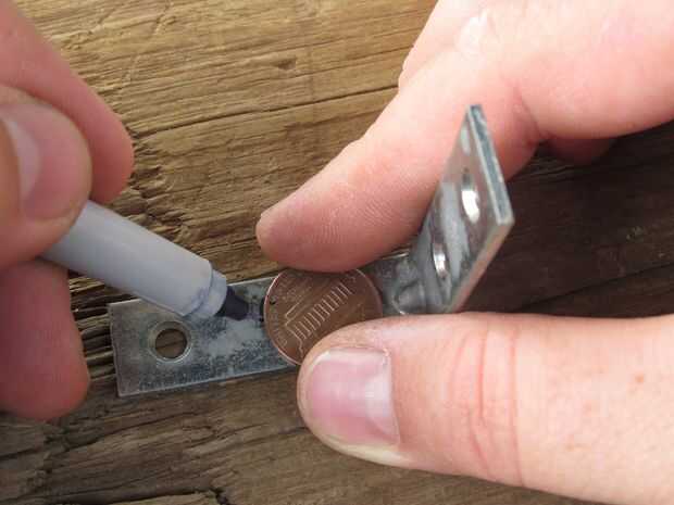 La primera tarea es modificar ligeramente el soporte en L para acortar a uno de los brazos. Todo lo que realmente tienes que hacer aquí es globo de una sección del brazo soportes dejando en uno de los agujeros de 1/4" que se utilizará para montar la cámara más adelante. En lugar de cortar el soporte directamente a través de optó por el fin trazado un centavo para crear la curvatura de la curva. Esto permitirá el montaje de cámara (soporte en L modificado) duplicar como una llave para apretar la cámara se monta en otros trípodes o para la apertura de una gran variedad de monedas ranura objetos tales como la parte de atrás de mi cubo de Polaroid. El corte terminó siendo un poco áspero, pero no hay que preocuparse como el siguiente paso es lijar.