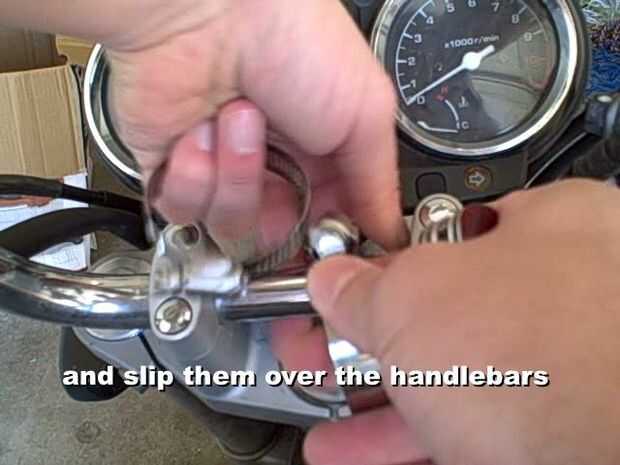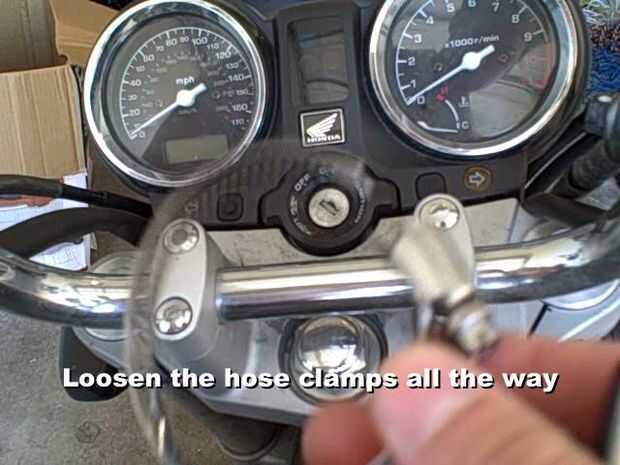 Comience por aflojar las abrazaderas de manguera y deslizarse sobre el manillar.