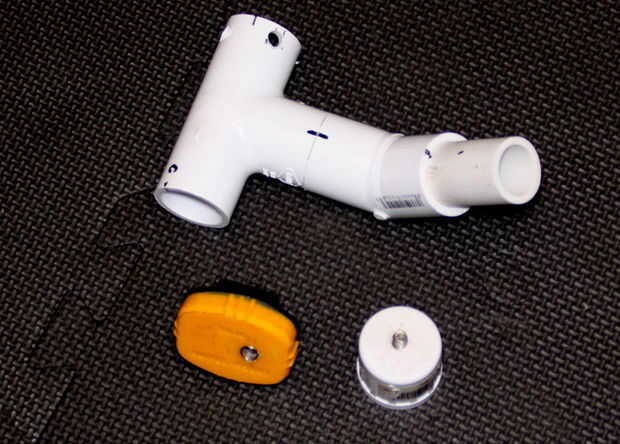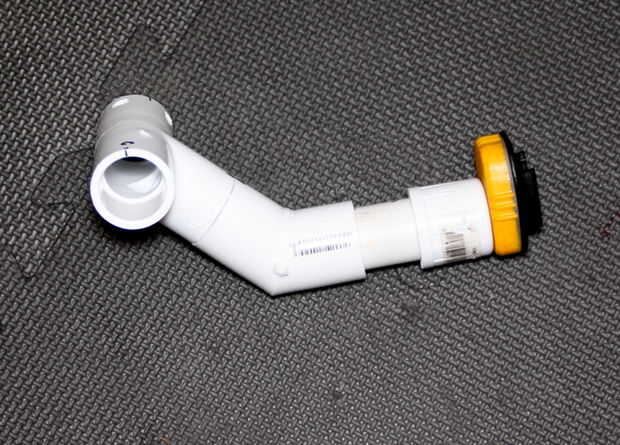 Conecte una t de PVC en el tubo de pulgada de 1.75" en el conector de 45 grados. Desde el conector de 45 grados, inserte la tubería de 2.5", sobre este Coloque la tapa. Ahora han montado la madre, ver foto de referencia.