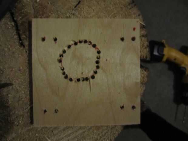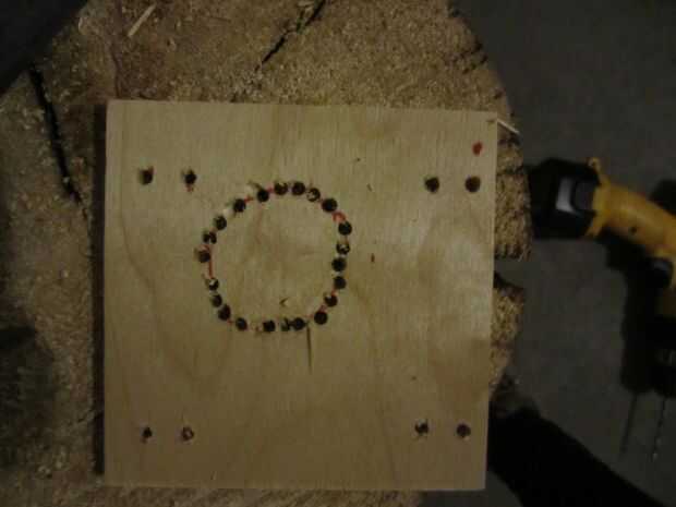 Inicie la perforación por agujeros que han marcado para los esquís, asegúrese de que utiliza una broca que se ajuste a una amarra a través. a continuación perfore la brecha media o lente. Yo no estaba muy bien preparado y tuvo que hacer un montón de pequeños agujeros, pero un poco de llano círculo funcionaría también como conseguiría el trabajo más rápido y limpio que lo que hice.