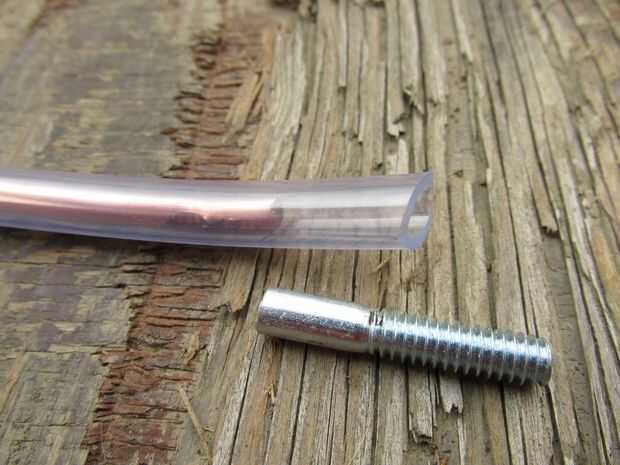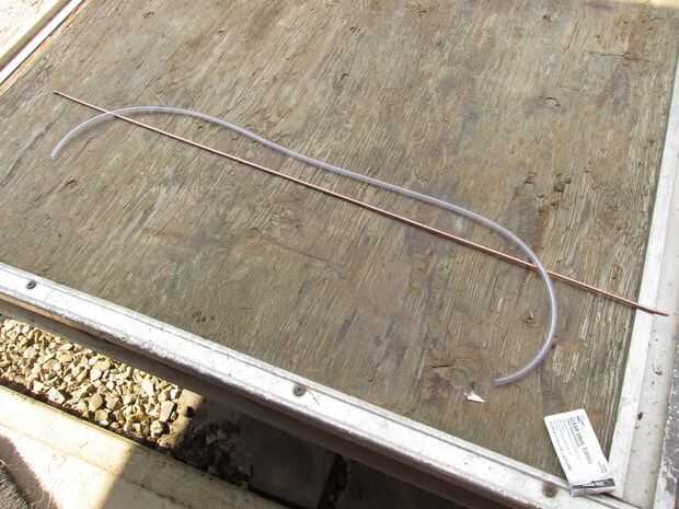 Con el alambre preparado el siguiente paso fue cortar un tramo de tubería de vinilo. La tubería se fije en el alambre, manteniéndolo limpio y también ofrece un poco de relleno en las manos cuando la flexión y la manipulación de la montura de la cámara flexible. Corté el tubo por lo que sería 1" más en cada extremo del cable. Así, el alambre que usé fue 3' largo que significa que corte el tubo de vinilo de 3' 2". La longitud extra se utilizará para sostener los extremos roscados que se utilizará para montar la cámara, Compruebe hacia fuera la última imagen para ver un ejemplo de esto.