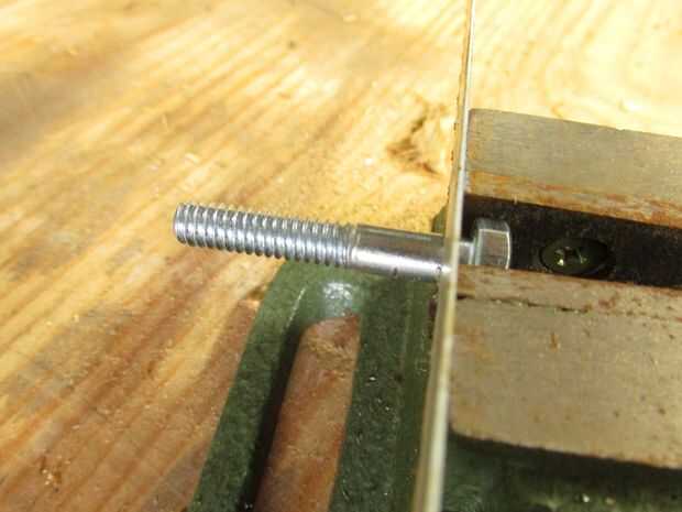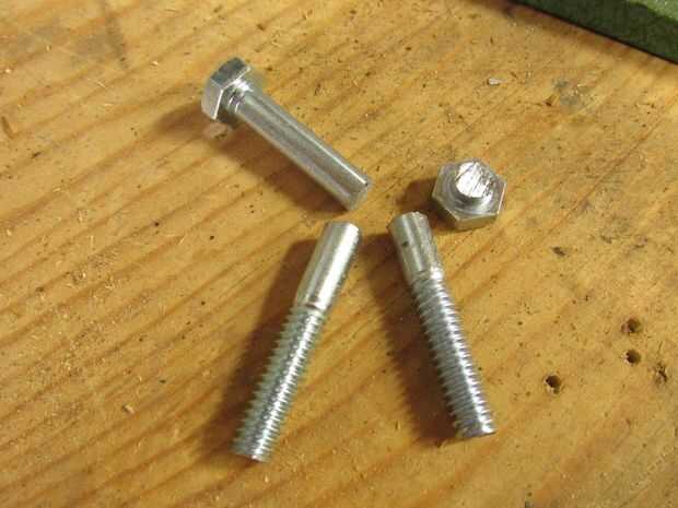 Estos pernos son 1/4" de 20 y se utilizará para montar una cámara en cada extremo del montaje del flex. Todo lo que necesitas es el vástago del perno, así que agarra tu Sierra para metales y hack de la cabeza del tornillo dejando la caña aproximadamente 1 1/4" de largo. 1" de la caña será empujada en el tubo de vinilo (recuerde lo que dije acerca de cortar el tubo por lo que era 1" largo en cada extremo?) y el otro 1/4" de la caña se pegue hacia fuera y va a ser lo que la cámara se monta en.