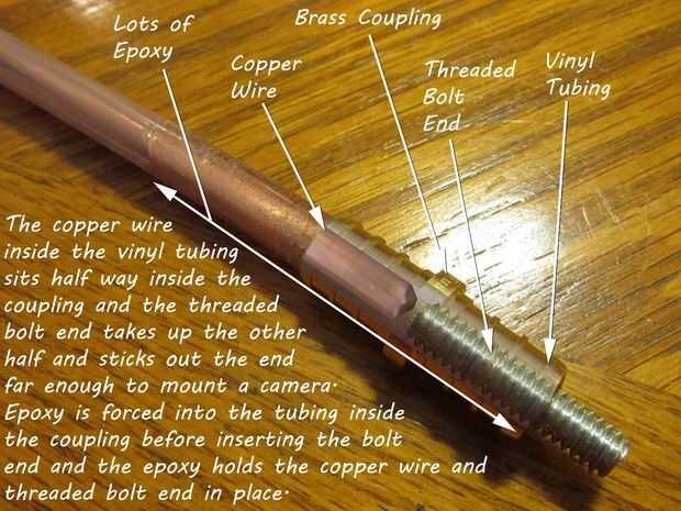 Paso 4: una de 1/4 vástagos de los pernos empuje en el extremo que acaba lleno de epoxy. El tornillo funciona como un pistón de epoxy a envuelven y asegure el alambre de cobre. Algunos de lo epoxy serán también globalización alrededor de las roscas del perno de sujeción en su lugar dentro de la tubería. Asegúrese de dejar alrededor de 1/4" del perno que sobresale del tubo para que tengas un montón de hilos para garantizar su cámara sobre.