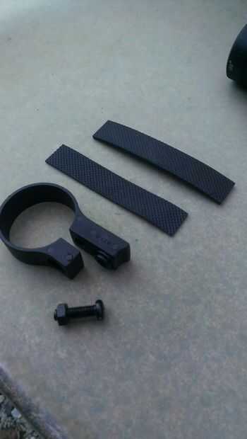 Extienda el soporte y deslícelo bajo el alcance por detrás y luego cierre todo el alcance. Utilice a los separadores de goma que vienen con los soportes de montaje (si tenes uno nuevo, o si salió de una bicicleta con una) reflector o cortan alguna goma de una llanta o algo similar.