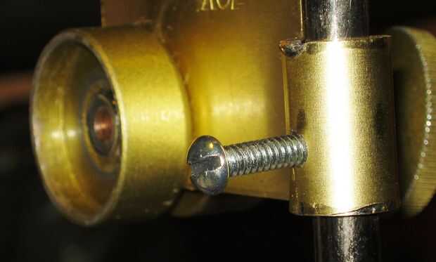 Solución: En realidad, había hecho algunos trabajos en esta bisagra antes. Usando un punzón y una prensa del taladro, ya había perforado un agujero a través de la bisagra y aprovechado para un tornillo 6-32. (ver imagen)
