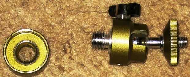 Solución: Pero este oro metal fue mejor. Tenía un tornillo pero también tenía un anillo de metal alrededor del montaje del eslabón giratorio con un anillo roscado (ver imagen). Así pude atribuyo el cabezal giratorio a la bisagra.