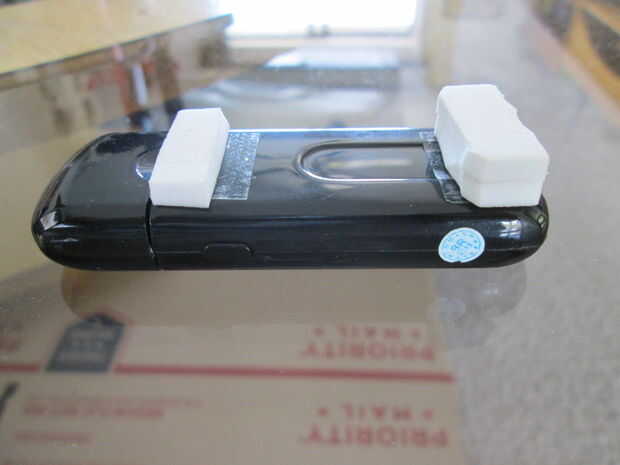 Cortar la espuma en 3 rectángulos, luego apiladas 2 y pegado a la parte superior delantera y 1 en la espalda superior, esto le dio la cámara a hacia abajo del ángulo cuando su adjunto. La espuma tiene una vibración humedeciendo efecto que también ayuda a estabilizar el video.