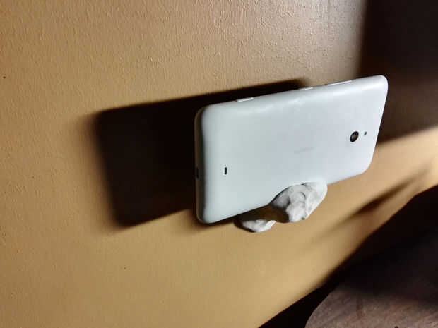 1. Desatornille el "fin del negocio" de una seguridad de bajo costo puerta viendo el lente.2. fijarla (temporalmente) sobre la lente de la cámara del teléfono. Por suerte mía fue un firme pon en la caja de goma, pero Blu-Tack® o similar habría h
