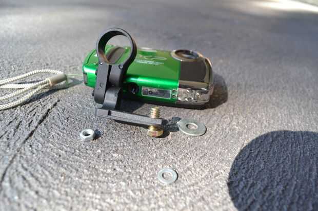 Simplemente coloque el tornillo por el agujero donde el reflector solo vino hacia fuera. Conecte la cámara y luego experimentar mimbres tuercas o arandelas hasta que tienes un ajuste apretado y su cámara es en firme.