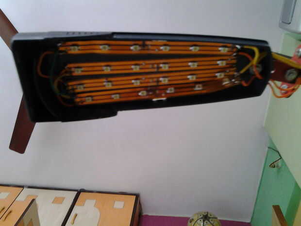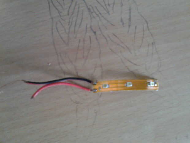 cuatro tiras de LED con los alambres de la soldadura y luego conectar los 4 tiras en paralelo a los cables positivo y negativo de adaptadores