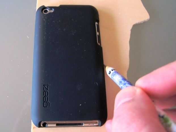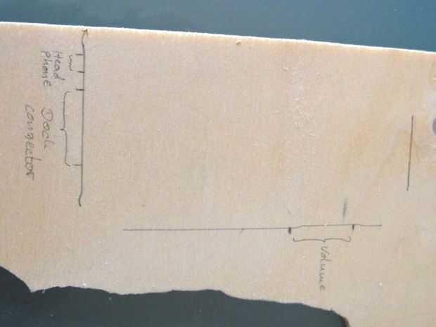 • También marcó los puertos de los dispositivos (auriculares, conector para base dock, botones) así que sé donde poner los soportes de retención en un paso posterior (Foto 2)