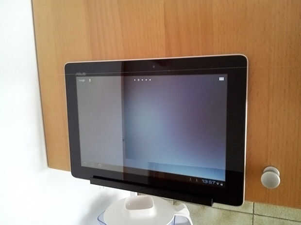 Quiere poner muy fácil barato y efectivo iPad/tabletas? Todo lo que necesitas es una gran placa de soporte (elegí éste por sólo 40 p) y una pequeña bolsita de Sugru auto ajuste de goma.Doble las patas delanteras del soporte hacia fuera ligeramente a