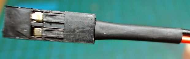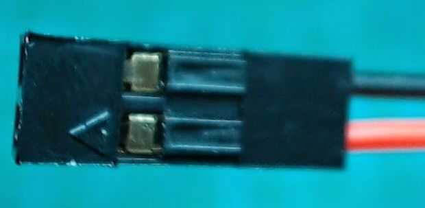 La cubierta de Dupont tiene un pequeño triángulo en relieve en un lado del plástico. Utilizo esto a indican positivo y siempre de orientar mi cable por lo que el rojo es positivo, el rojo está en la parte inferior. De esa manera sé que es positivo cuando me conecto, y llego a ser un poco más obsesivo.