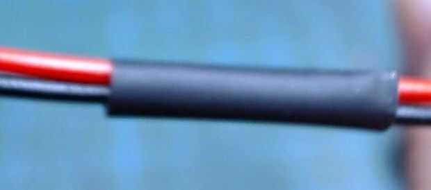 Ahora que eso se hace, deslice el tubo shrinky hacia arriba para que quede al ras con la carcasa y el encogimiento frotando ligeramente el soldador caliente sobre ella (teniendo cuidado de no quemar la caja, el cable, el tubo de shrinky o usted mismo.