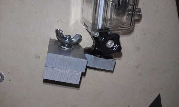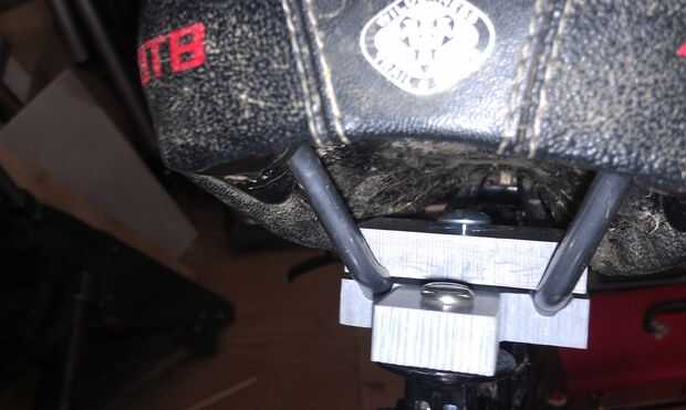 Utilice un perno de 1/4" con arandela, arandela y tuerca de mariposa para fijar el soporte a los raíles de los asientos.