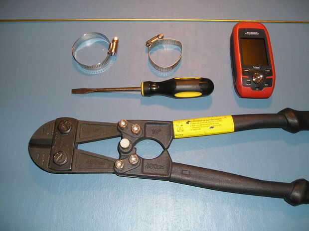 El soporte del GPS está hecho de varilla de latón de 1/8 de pulgada, que está disponible en la sección de hardware de cualquier tienda de mejoras para el hogar. Elegí latón porque es más dúctil que el aluminio, y no oxida como el acero.