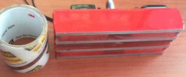Para proteger la pintura del vehículo me pongo pesado scotch embalaje cinta (otro tipo se puede utilizar también) en la superficie del imán que hace contacto con el vehículo.