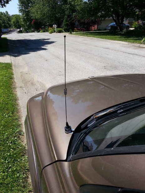 Descubrí que una antena de montaje en labio de tronco puede también montar en el capó de un vehículo y no se ven fuera de lugar. Generalmente se monta la antena de radio FM en el lado del pasajero, este montaje de los conductores se verá decente y no llamar la atención de dos antenas montadas lado a lado (también reducir los problemas de interferencia que recibirás). Obtendrá algún beneficio de la campana que actúa como un plano de tierra también.