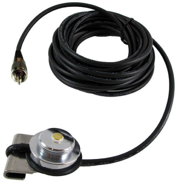 Necesita una base de antena de montaje en labio NMO. Generalmente se pueden llegar con cables de corte a la longitud con el conector que necesita ya. Fui con un montaje que tenía un 12' cable coaxial y conector UHF (PL259) en el extremo. La antena que conecte puede ser cualquier tipo que se construye para conectar a una base NMO.